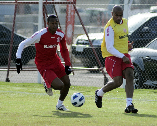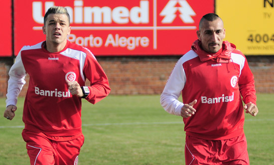 D'Alessandro (E) e Guiñazu correm no campo suplementar do Beira-Rio
