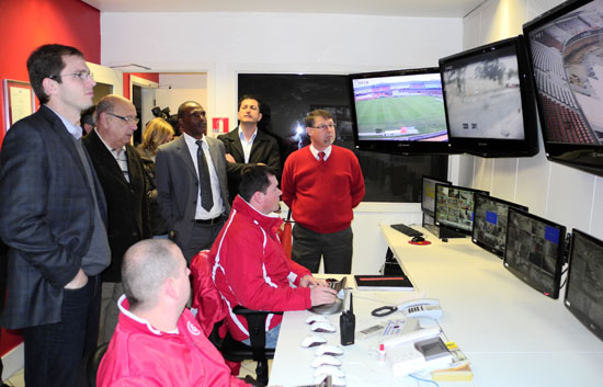 Visitantes observam o sistema de monitoriamento do estádio Beira-Rio