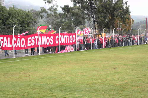 O treinamento desta manhã de sábado teve uma peculiariedade especial. Logo no início dos trabalhos no campo suplementar do Beira-Rio, quando o preparador físico Fábio Mahseredjian recém comandava o aquecimento dos jogadores, mais de cem torcedores marcaram presença no entorno do campo suplementar entoando cânticos das partidas no Gigante. O que era um simples treino regeneraivo mais parecia jogo e o apoio ao grupo colorado e ao técnico Paulo Roberto Falcão foi demonstrado. "Todos os jogadores aqui são vencedores, mas é sempre bom receber esta força da torcida. Com certeza nos estimula mais e ajudará no jogo importante contra o Coritiba", destaca Tinga. "Esta não é uma relação de agora. A paixão é antiga e isso é muito bom", completa Falcão.