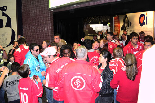 A grande e blea manifestação de apoio ocorrida no treino desta manhã no Beira-Rio não ficou apenas em Porto Alegre. Como se fosse uma segunda parte da mobilização da torcida em prol do Internacional, a delegação colorada foi recepcionada com muita festa no Aeroporto Afonso Pena, na capital paranaense, na tarde deste sábado. Longe da cidade, o aeroporto foi ocupado por dezenas de torcedores que não titubearam ao ver de perto os jogadores e a comissão técnica do Campeão de Tudo. Uma verdadeira prova de paixão sem fronteiras.