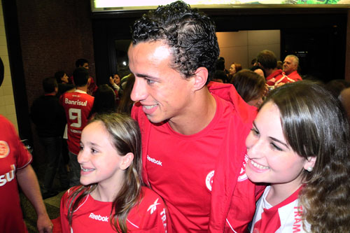 A festa ainda continuou no hotel da concentração colorada. Os mais assediados foram o técnico Paulo Roberto Falcão e o meia D'Alessandro, mas cada um do grupo, de alguma forma, recebeu o carinho da massa vermelha e branca. Todos atrás de fotos, autógrafos, abraços, entrega de cartas e, claro, alento ao time na partida válida pela quinta rodada do Campeonato Brasileiro, neste domingo, às 18h30, contra o Coritiba no estádio Couto Pereira.