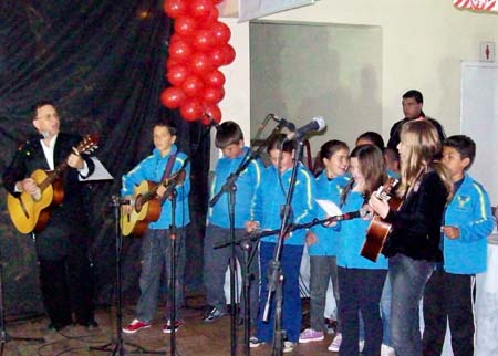Projeto ASEMA, mantido pela Prefeitura Municipal, participando do momento musical do Chá das Coloradas de Arambaré. A maioria dos meninos e meninas que integram este grupo são também atletas da Escolinha de Futebol do NCA.