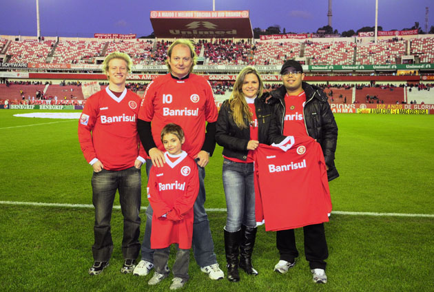 Os sócios Wilson Luiz Maccagnan, Simone Maria Fries e Artur Dupont Schwingel, que foram sorteados pelo Inter nos dias 11 e 18 de junho, na campanha de expansão do quadro social, estiveram no Beira-Rio na partida contra o Figueirense, no último domingo (26/6). Além de ganharem camisas oficiais usadas no Mundial de 2010, eles entraram em campo antes da partida e depois assistiram à goleada das Tribunas de Honra. Ao final do jogo, ainda tiveram a chance de tirar fotos e pegar autógrafos com os jogadores. Enfim, foi um noite privilegiada para estes associados.