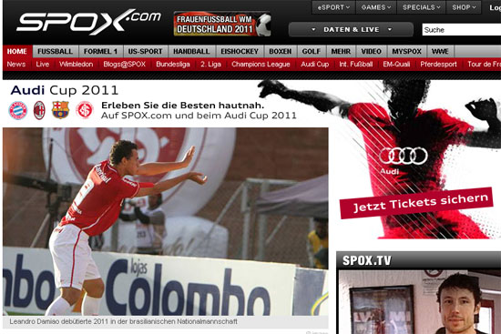 Pode colocar na lista, Damião. Artilharia no Brasil em 2011, primeira convocação para a Seleção Brasileira, destaque dado pela maior entidade do futebol (Fifa), campeão gaúcho há pouco mais de um mês, e agora uma matéria especial no país em que, neste mês, o Internacional disputa a Copa Audi ao lado de gigantes da Europa (Barcelona, Bayern e Milan). Nesta sexta-feira, o site de esportes Spox estampou em sua capa uma entrevista com Leandro Damião.