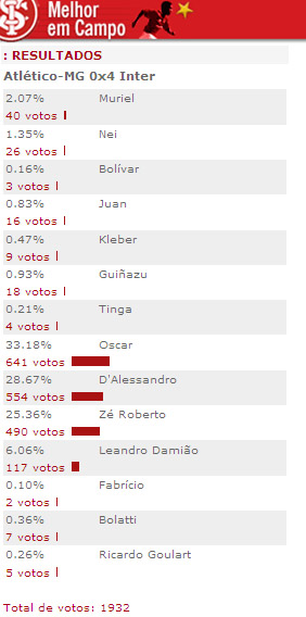 Oscar eleito pela torcida o melhor em campo contra o Galo