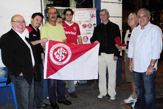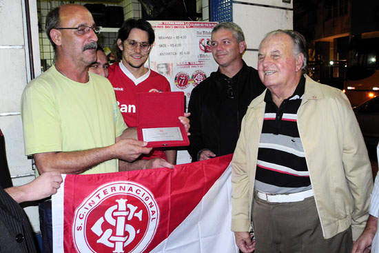 A direção do Internacional prestou uma homenagem a um tradicinal reduto de colorados na cidade do Rio de Janeiro na noite desta sexta-feira. O vice-presidente Gelson Pires e o diretor de futebol Cuca Lima presentearam com uma placa o dono do Bar Copinha, localizado na esquina das ruas Bolívar e Leopoldo Miguez, no Bairro Copacabana. O local é ponto de encontro de torcedores e sócios colorados na cidade para acompanhar os jogos do Inter transmitidos pela televisão. A cada partida cerca de 80 torcedores se reúnem no local em pleno coração do bairro mais famoso do Rio de Janeiro. O local já foi decorado com adesivos, bandeiras e outros adereços do Inter. O encontro de colorados no ponto começou a ser difundido pelo Consulado do Inter no Rio há três anos e hoje já é um ponto estabelecido para torcer pelo Clube.