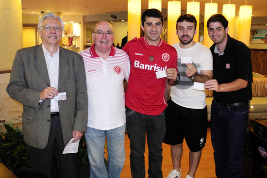Nos rostos de Vinicius Laerte, Valmor Battiston, Joaquim Bauer e Gustavo Mantovani, uma única estampa: alegria em ser sócio do Internacional. Estes são apenas alguns exemplos de torcedores que vieram na tarde desta quinta-feira, no hotel do Inter em São Paulo, para retirar os ingressos sorteados pelo Clube para os associados colorados no Estado de São Paulo. A satisfação pelo valor dado aos sócios longe de Porto Alegre foi visível. O vice-presidente de relações sociais, Gelson Pires, comandou a entrega ao pessoal que irá ver Corinthians x Inter, no estádio Pacaembu.