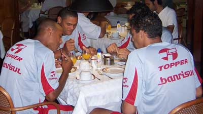 Jogadores tomam café no Hotel Dall'Onder