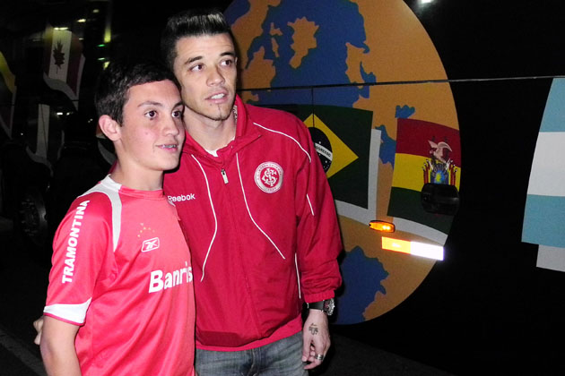 D'Alessandro atende o torcedor na chegada ao hotel onde o time está concentrado