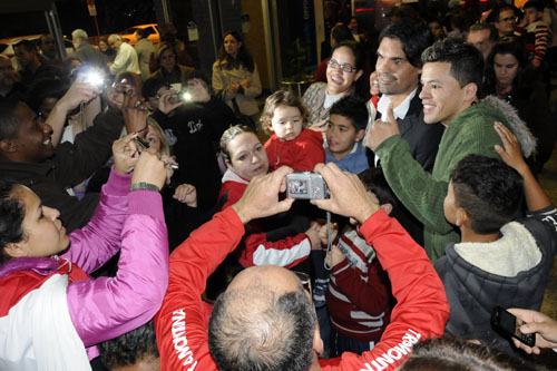 A surpresa para todos foi a grande festa da torcida colorada, que lotou o espaço à frente da sala de embarque do Aeroporto Salgado Filho. Fotos e autógrafos com os ídolos fizeram a despedida do solo gaúcho ainda mais bonita. Cerca de 300 torcedores mandaram forças para o grupo. O diretor técnico, Fernandão, foi um dos mais assediados.