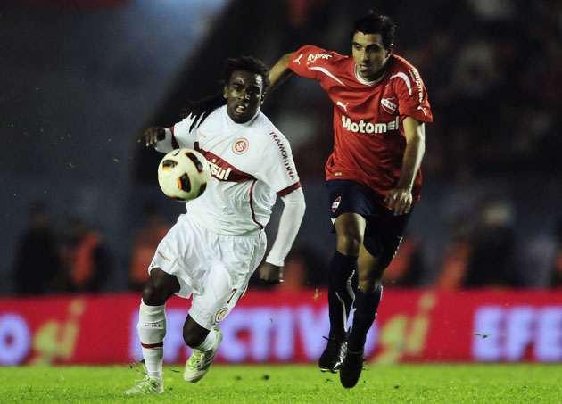 Inter, do volante Élton, divide com a marcação: Inter valente em Avellaneda
