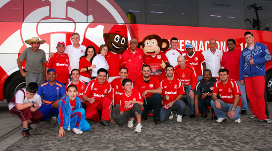 A noite da última sexta-feira (12/08) foi muito especial para os colorados de Sombrio-SC mas, mais espeial ainda para comitiva da Comunicação Social do Inter, tamanho a receptividade e carinho com todos foram recebidos. O ônibus Campeão de Tudo estava sendo esperado na entrada da cidade por um grande grupo de colorados comandados pelo cônsul Regis Bohrer. Antes mesmo de iniciar-se a carreata, as mascotes Saci e Escurinho (dos projetos sociais), desceram do ônibus e foram caminhando pelas ruas da cidade em direção à igreja principal, seguidos por vários torcedores. Um sucesso absoluto.