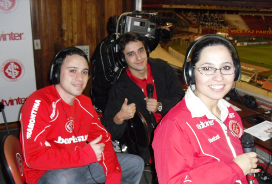 Luis Edson (E) assistiu ao jogo junto à equipe da TV Inter
