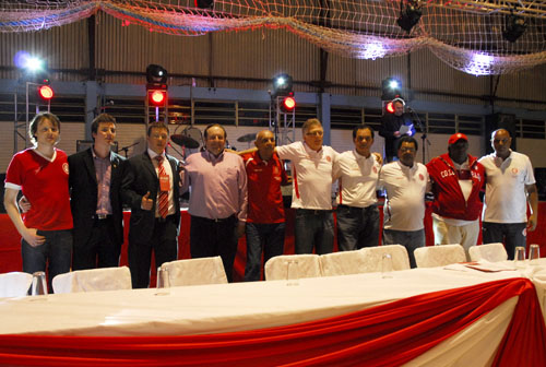 Luis Carlos (5º da direita à esquerda), com os ídolos eternos do Inter e a nova diretoria do consulado