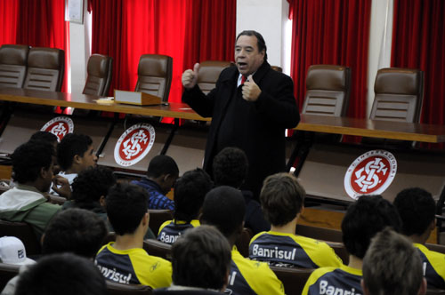 Dando continuidade ao ciclo de palestras aos jovens das categorias de base do Internacional, foi promovida na tarde desta segunda-feira um bate-papo do delegado da Polícia Civil (Região Metropolitana), Edilson Paim, sobre drogas. Ele veio acompanhado dos também delegados Marco Antônio Guns e Carolina Terres, além dos escrivães Lira Machado e Sérgio Costa Leite. O Salão Nobre do Conselho Deliberativo ficou tomado pelos garotos de diferentes categorias, que escutaram atentos as palavras de Paim. A palestra foi organizada pelos diretores do Inter, Celso Simões e Roberto Lacerda. "Nosso objetivo com isso é trabalhar a parte estrutural dos atletas, ou seja, o comportamento deles fora das quatro linhas", explicou Lacerda.