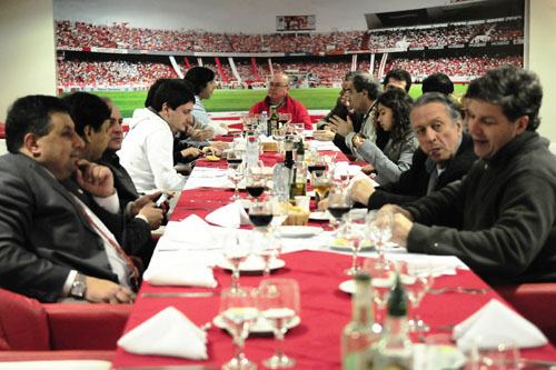 Em mais uma demonstração de sua grandeza, o Internacional promoveu na noite de terça-feira um jantar de confraternização com a diretoria do Independiente, adversário da decisão da Recopa Sul-Americana 2011 nesta quarta-feira. O evento, que aconteceu no hall das suítes do estádio Beira-Rio, reuniu o vice-presidente de relações sociais do Inter, Gelson Pires, o vice-presidente de serviços especializados, Luciano Davi, o assessor especial da presidência, Alexandre Mussoi Moreira, os assessores da presidência Felipe Vieira e Maximiliamo Carlomagno, e diretores do departamento de relações sociais com autoridades do Independiente, como o vice-presidente, Hugo Barrueco, o secretário geral do clube, Cristian Emiliano Mattera, o secretário da imprensa, Ricardo Rodríguez, e diretores do time argentino.