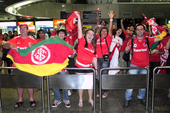 Muitos torcedores aguardavam ansiosamentes pelos jogadores do Inter na chegada a Fortaleza. O saguão do Aeroporto Pinto Martins recebeu cerca de 50 colorados, que buscaram fotos e autógrafosdos ídolos.