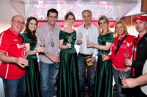 A cidade de Garibaldi, na Serra Gaúcha, será sede de um evento especial neste mês de outubro: a Festa Nacional do Champanha (Fenachamp 2011). Mas antes disso, as 'soberanas' do evento, como são chamadas a rainha e as princesas, foram ao estádio Beira-Rio no último domingo para visitar o Beira-Rio e assistir à vitória do Inter por 2 a 1 sobre o Atlético-MG. Elas foram recebidas pelo presidente do Clube, Giovanni Luigi, o vice-presidente de serviços especializados, Luciano Davi, e o vice de relações sociais, Gelson Pires, nas cabines de imprensa do estádio.