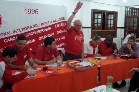 Nesta terça-feira, na cidade de Nova Santa Rita, ocorreu a reunião mensal de trabalho da Regional Intergrande Porto Alegre, grupo que congrega 12 cidades (Alvorada, Gravatai, Glorinha, Cachoeirinha, Canoas, Esteio, Sapucaia do Sul, Nova Santa Rita, Triunfo, Eldorado do Sul, Viamão e Guaíba) da Região Metropolitana da capital gaúcha e que já existe há 14 anos. A reunião teve um momento emocionante quando o eterno ídolo Caçapava falou do seu companheiro e amigo Escurinho, sendo acompanhado por um minuto de silencio em homenagem ao grande craque colorado.
