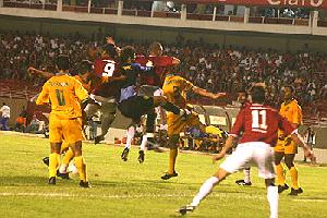Mas foi o volante Edinho (foto abaixo), que atuou improvisado como zagueiro, o autor do primeiro gol. Aos 31 minutos, ele aproveitou uma falta cobrada por Élder Granja e desviou de "peixinho" para o fundo da rede. 1 a 0.