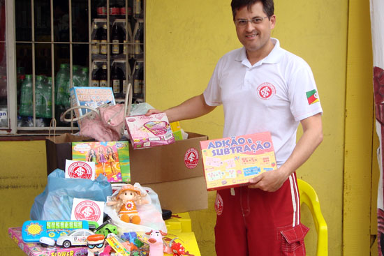 O consulado de Novo Hamburgo realizou outra ação social e arrecadou muitos donativos em dois dias de Pedágio do Brinquedo. Os presentes doados serão entregues na Festa da Criança organizada pela Turma Anjo do Bem, na Rua Floresta, bairro Boa Saúde, de Novo Hamburgo. O cônsul, João Carlos Carvalho, agradece a todos os participantes, independente de time de futebol. “Muitos pais levaram seus filhos para que doassem seus antigos brinquedos, outros ficavam sabendo da ação e compravam novos. O importante é que diversas crianças vão receber presentes e ficarão alegres”, afirma João Carvalho.