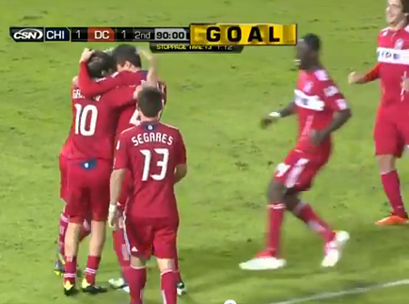 O Chicago Fire venceu o DC United por 2 a 1 no RFK Stadium, em Washington, na noite do último sábado (15/10), pela Major League Soccer (MLS). Em uma partida dramática, o United saiu na frente com um gol de pênalti convertido por Dwayne De Rosario, aos 44 minutos do segundo tempo. A torcida do United ainda comemorava quando Sebastian Grazzini empatou com um belo chute da entrada da área, aos 46. Dois minutos depois, Diego Chaves fez o que parecia impossível. O jogador aproveitou um cruzamento de Gonzalo Segares e virou o jogo para o Chicago.