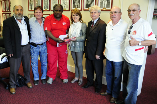 O ídolo eterno do Internacional Caçapava será homenageado pela Câmara de Vereadores de Caçapava do Sul no próximo mês de novembro. Nesta quarta-feira, o vice-presidente de relações sociais do Clube, Gelson Pires, recebeu na Sala da Presidência, no Beira-Rio, a vereadora Rosane Coradini Abdalla e o cônsul colorado da cidade, Manoel Oliveira, que lhe entregaram a indicação aprovada pela Câmara concedendo uma grande sessão solene em reconhecimento ao jogador que marcou época no Inter e levou o nome do município Rio Grande do Sul afora. Ainda estiveram presentes na entrega o assessor especial do gabinete da senadora Ana Amélia Lemos, Carlos Carvalho, e o assessor da vereadora, José Irineu Costa.