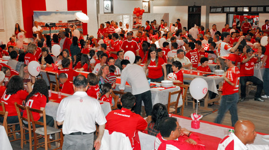 A cidade de Três Cachoeiras-RS organizou uma bela festa no último dia 14 de outubro para celebrar o Internacional e festejar com demais colorados. Foi o 3ª Jantar Festa Show Colorado do município. A comitiva do Inter marcou presença no evento e contou com a participação do atacante Dellatorre, do time principal, e da musa do Clube no concurso Musa do Brasileirão, Jéssica Maciel. Taças das principais conquistas e o ônibus Campeão de Tudo enriqueceram o encontro.