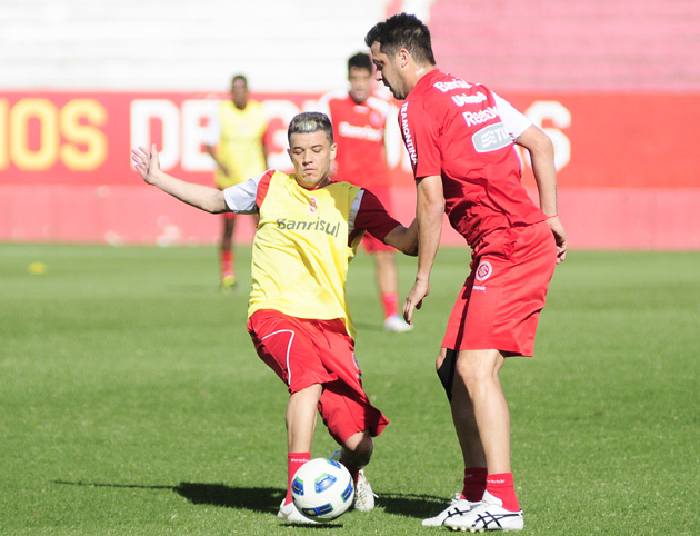A comissão técnica promoveu um 'treino alemão', no qual três times se enfrentavam em uma das metades do gramado, cada um com uma goleira para defender. A preparação será intensificada no feriado desta quarta-feira, quando o Inter treinará em dois turnos.