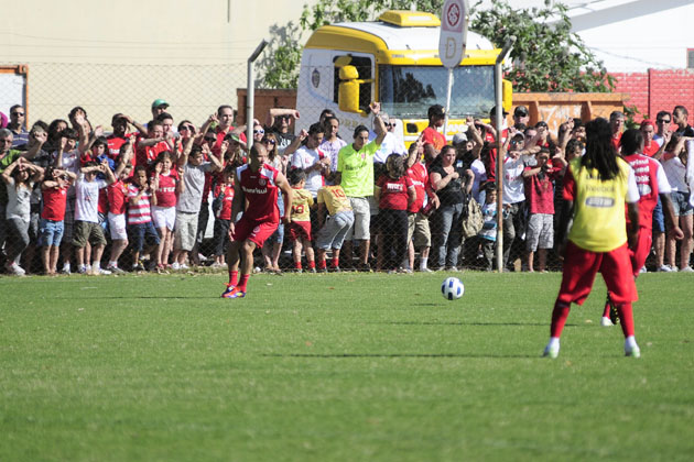 A quatro dias do decisivo jogo contra o Fluminense, centenas de torcedores aproveitaram o feriado desta quarta-feira para acompanhar a preparação do time no Beira-Rio. Muitos pais com filhos ou simplesmente torcedores que vivem a expectativa pela próxima partida no Brasileirão, aglomeraram-se ao redor do campo suplementar para assistir ao mini-coletivo que foi orientado pelo técnico Dorival Júnior. Ao final do trabalho, muitos jogadores foram ao encontro dos torcedores para dar autógrafos e posar para fotos junto aos fãs.