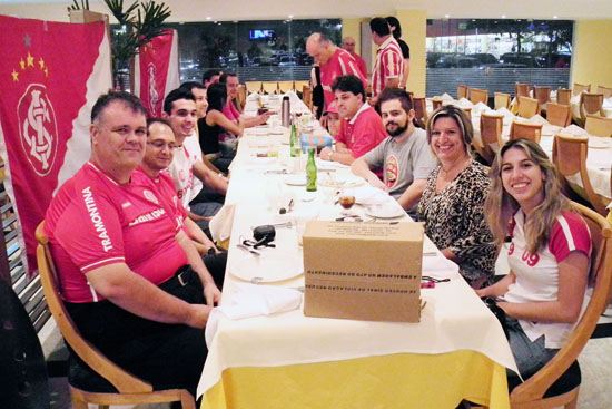 Um grupo de torcedores do Internacional se reuniu na noite de sábado (12/11) em uma churrascaria localizada próxima ao hotel onde o time está concentrado para a partida contra o Cruzeiro, em Belo Horizonte. O encontro foi organizado por Rogério Marinho, que lidera de forma competente o consulado colorado na capital mineira.