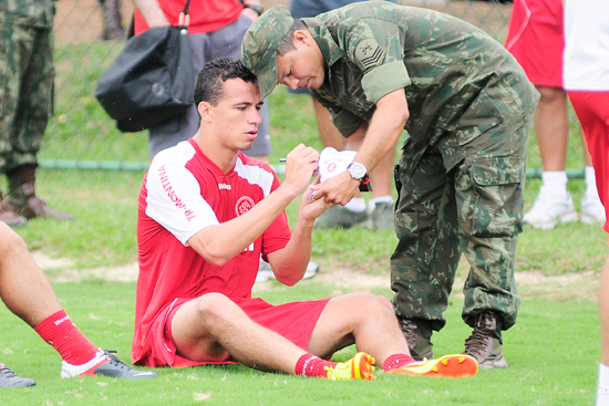 Damião concede autógrafo a integrante das Forças Armadas depois do treino no Rio