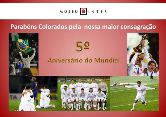Neste dia 17 de dezembro comemoramos cinco anos da conquista da Copa do Mundo de Clubes FIFA realizado no Japão em 2006. Esta foi a terceira edição da principal competição de clubes em nível mundial. A competição contou com seis times, sendo que todos foram campeões de seus respectivos torneios continentais. Foram eles: o sul-coreano Jeonbuk Motors (AFC), o neozelandês Auckland City (OFC), o egípcio Al-Ahly (CAF), o mexicano América (CONCACAF), o espanhol Barcelona (UEFA) e o brasileiro Internacional (CONMEBOL).