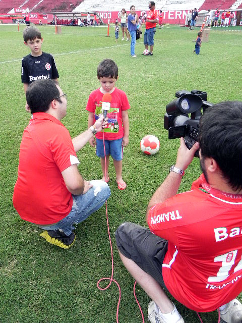 Os coloradinhos até cantaram no microfone da TV Inter o clássico 'Vamo, vamo, Inter'
