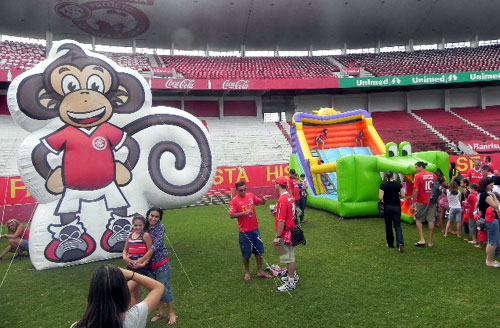 Brinquedos infláveis e bolas no Beira-Rio fizeram a alegria de crianças e pais