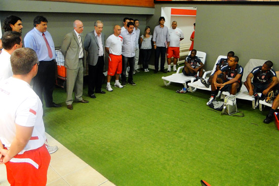 Fernandão e o técnico do Sub-23, Osmar Loss, também falaram com o grupo colorado e mantiveram o discurso, pregando empenho de todos e destacando que cada um tem a responsabilidade de representar o Internacional.
