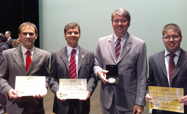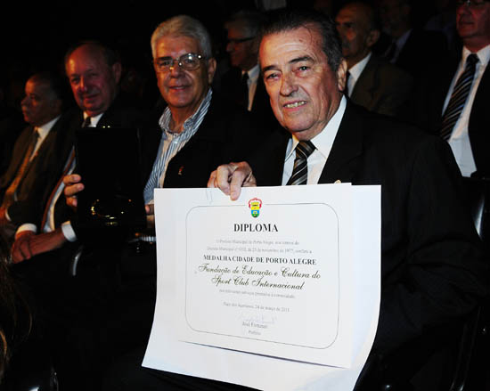 Presidente da FECI Cesardo Júlio Vignochi (D) exibe o diploma recebido da Prefeitura de Porto Alegre