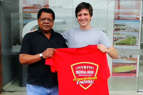 O acadêmico em jornalismo e torcedor do Internacional, Felipe Costa, 24 anos, fará uma viagem de Kombi pela América Latina. A jornada começará em janeiro, terá a duração de seis meses e passará por 17 países. “A ideia é gravar um documentário que mostre a possibilidade de ser feliz com simplicidade e registrar a rotina das pessoas e os sonhos das pessoas”, afirma Costa. Antes de partir para a expedição, o jornalista visitou o Beira-Rio para firmar parceria com o Clube e tirou uma foto ao lado do ex-jogador e ídolo eterno do Inter, Claudiomiro.