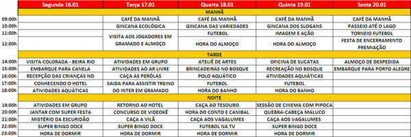 A saida das crianças será do Beira-Rio, às 14h do dia 16/01 (segunda-feira). O sócio sorteado poderá mandar seu filho. Serão sorteadas duas crianças.
