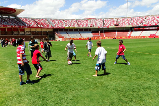 Os pequenos aproveitaram para jogar futebol no gramado do Beira-Rio