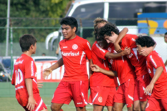 Infantis colorados comemoram gol de Vitor contra o Santos