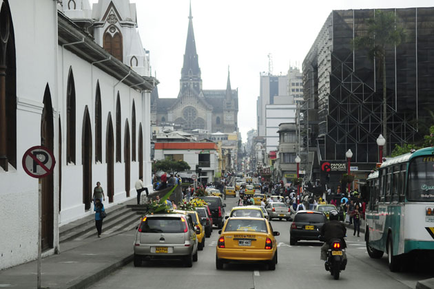 Vista de uma rua de Manizales no caminho para o estádio