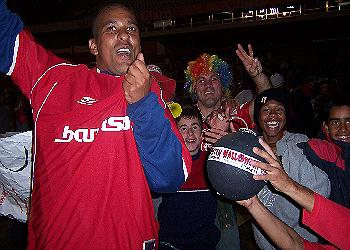 Chiquinho festeja junto aos seus familiares no estádio