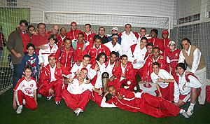 Jogadores colorados comemoram o título em Canoas