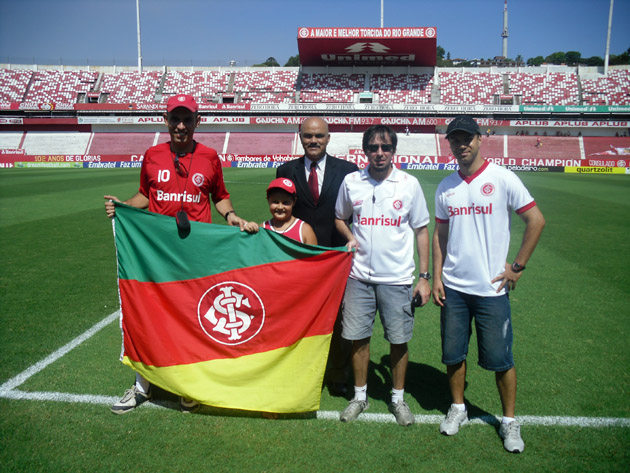 Três sócios em dia com o Inter enfrentaram o forte calor de Porto Alegre para curtir o sábado de Carnaval vendo Inter x Pelotas no Beira-Rio de forma diferente. Eles foram sorteados em mais uma promoção do Clube que beneficia seus associados e desfrutaram de vantagens como entrar no gramado e assistir ao jogo em local privilegiado: Sandro Mello e Renato Ribeiro Filho viram a partida das Tribunas de Honra e Arthur R. Borges viu o jogo da cabine da Rádio Inter, sendo o sócio comentarista da tarde.
