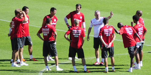 Técnico Dorival Júnior (de branco) orienta o time para o desafio contra o Santos