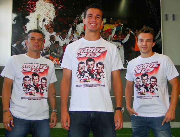 Quer uma boa dica de presente para esta Páscoa? O Internacional lançou uma camiseta personalizada com caricatura conjunta de D'Alessandro, Dagoberto e Damião que podem ser adquiridas ao preço sugerido de R$ 49,90. A peça está disponível na loja oficial do Clube na internet (http://www.lojadointer.com.br/), nas licenciadas Inter Sport e nos principais estabelecimentos de artigos esportivos do País. O autor da caricatura é o artista argentino Gonza Rodriguez.
