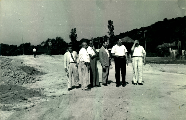 Membros da Comissão de Obras no aterro onde foi erguido o Gigante