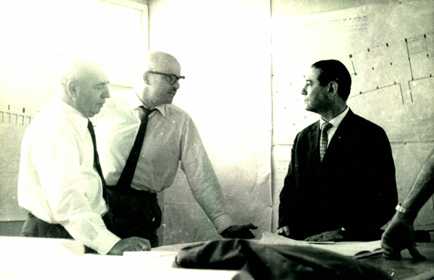 José Pinheiro Borda (E) e o engenheiro Ruy Tedesco (C) na década de 1960