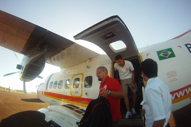 O Inter percorreu os cerca de 400 quilômetros entre Porto Alegre e Ijuí de avião. A delegação colorada foi acomodada em duas aeronaves de pequeno porte, que partiram da capital por volta das 15h deste sábado. O voo foi tranquilo e durou cerca de 1h15min. Na pista de aterrisagem, em Ijuí, dezenas de torcedores recepcionaram os jogadores e desejaram boa sorte para o confronto deste domingo.